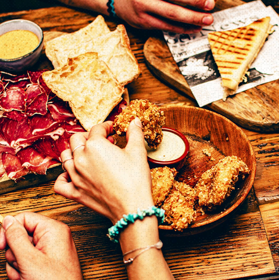 1kg de Poutine 500gr de jambon de pays 300gr de fromage 300gr de tataki de thon 15 yakitori 20 tenders 15 croquettes Serrano 60cm de fuet catalan 2 tacos croustillants